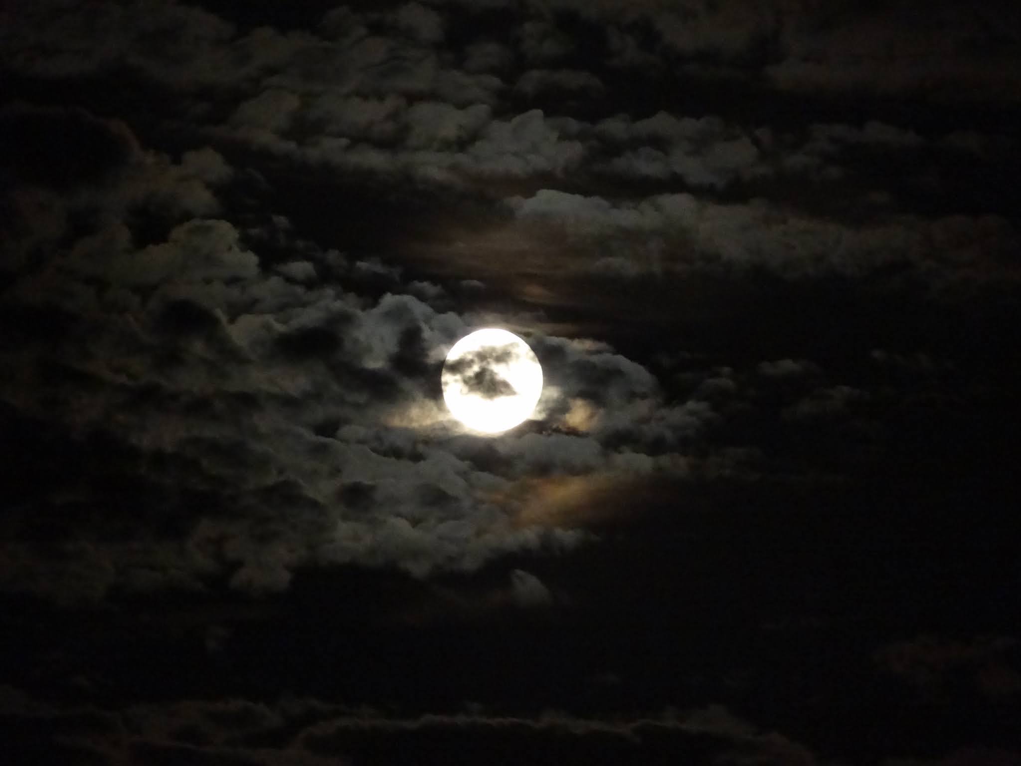 I saw the moon hiding behind the clouds